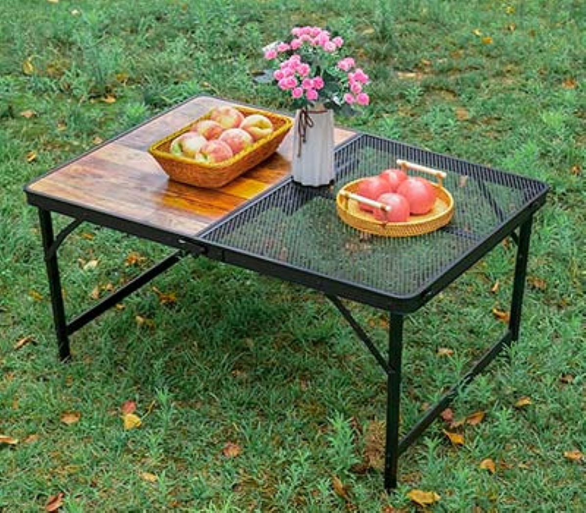 Aluminum is generally the best all round option because its lightweight, won't rust and can withstand heat. But if you're after a more premium look and some extra stability for fancy camping trips or glampings, then you can't ignore a wooden table. And if budget isn't a concern then you can even opt for HDPE plastic which is super easy to clean.