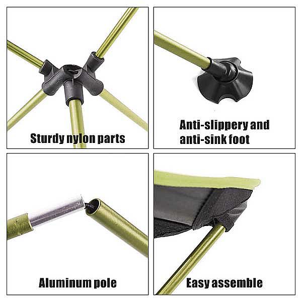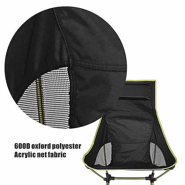 The fabric on this chair is anti-tear 600D Oxford, and the frame is aluminum. Typically, our carry bags are made of Oxford or 210T polyester.