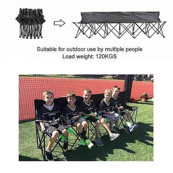 - This foldable multi-functional chair is suitable for events on the beach, patio, sports games, etc. It can support up to 120 kg for each seat.