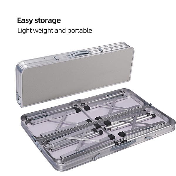 Another advantage of an aluminum camping table and chair set is its portability. The set is designed to be lightweight and compact, making it easy to carry and transport. It can be fluently packed into an auto box or pack, making it perfect for camping passages, picnics, or out-of-door events. The fold size is 92x33x11cm and the weight is only 7.3 kg, The set is also easy to set up and take down. utmost sets come with a carrying case, which makes them easy to store and transport. The table and chairs can be set up in minutes, allowing you to quickly create a comfortable out-of-door space.